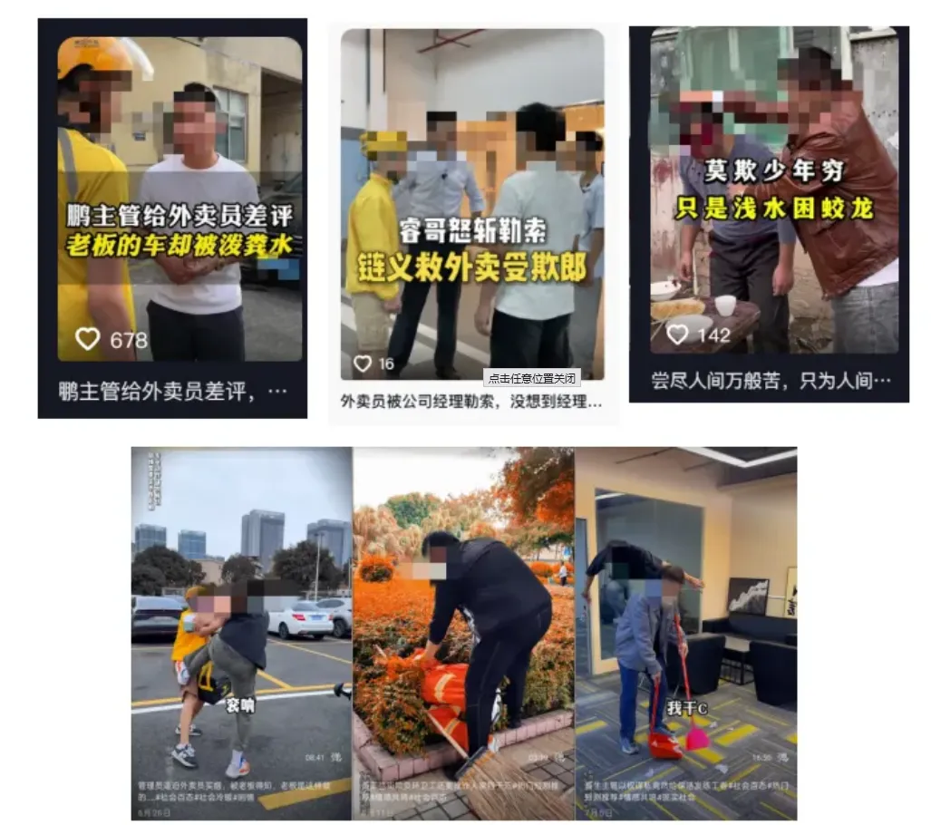 近日,公安网安部门查明,网民刘某龙(男,30岁)、宿某睿(男,30岁)、李某(男,30岁)等人为博取流量、吸引眼球、售卖课程、“起号”牟利,打着退役军人旗号,捏造虚假人设,摆拍与“外卖员”“保安员”等交涉的虚假视频,通过故意设计冲突情节等方式吸粉引流,误导不明真相网民,制造对立情绪,透支公众信任,消费公众善意,污染网络生态。